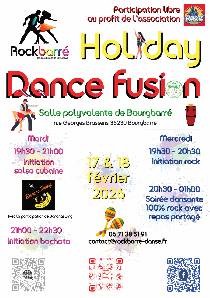 Le Holiday dance fusion a pour objectif de promouvoir la danse dans son ensemble. Il se déroule 4 fois dans l'année, durant les vacances, en partenariat avec d'autres associations de danse de la région rennaise. Il se déroule sur deux soirées.